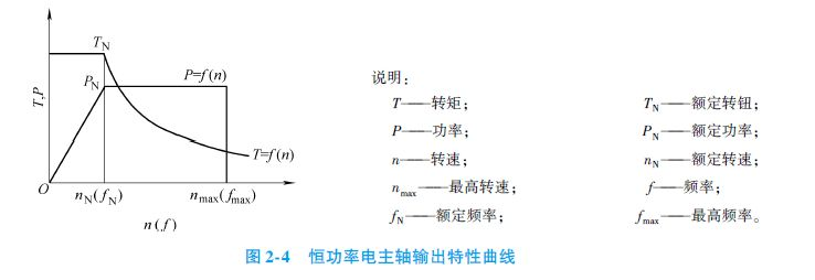 在電主軸調速全過程中, 電動機某一轉速按功率保持不變的電主軸。恒功率電主軸的輸出特性曲線如圖2-4 所示。