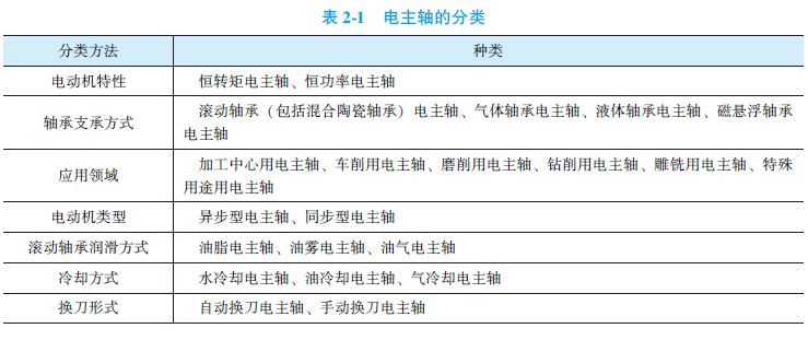 在中華人民共和國機械行業標準《電主軸第1 部分: 術語和分類》(標準編號: JB/ T10801. 1—2014) 中規定了按電主軸電動機特性、軸承支承方式和應用領域分類的方法。